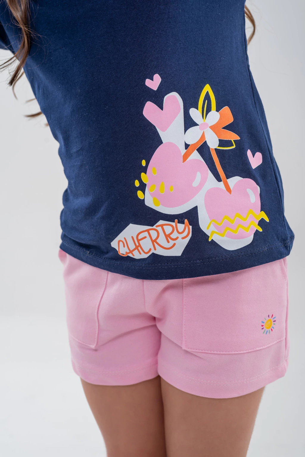 Apresentamos o Conjunto Cereja de coração azul Marinho, a escolha perfeita para o conforto e estilo das meninas! Este conjunto é composto por uma blusa t-shirt 100% algodão com estampa em silk screen e gola em ribana, acompanhada de um short de moletom com bolsos frontais e cós elástico. Disponível nos tamanhos 4, 6, 8, 10 e 12, garante um ajuste perfeito para cada pequena.