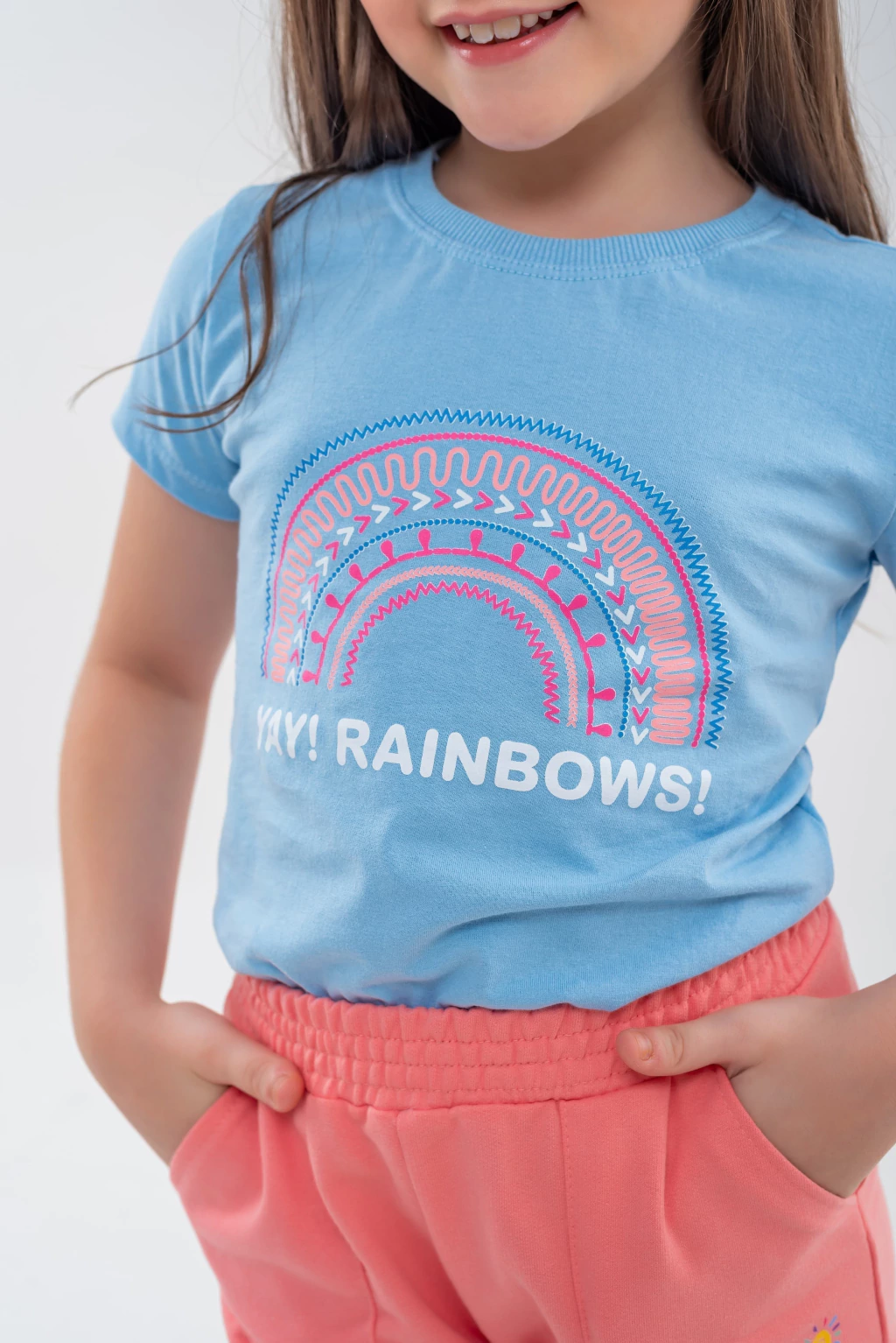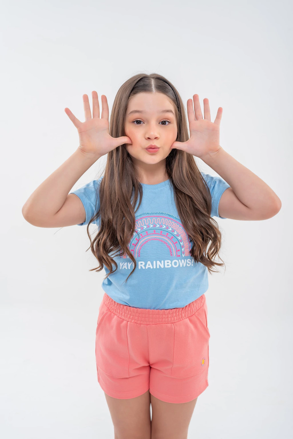 Apresentamos o Conjunto Rainbows azul bebê, a escolha perfeita para o conforto e estilo das meninas! Este conjunto é composto por uma blusa t-shirt 100% algodão com estampa em silk screen e gola em ribana, acompanhada de um short de moletom com bolsos frontais e cós elástico. Disponível nos tamanhos 4, 6, 8, 10 e 12, garante um ajuste perfeito para cada pequena.