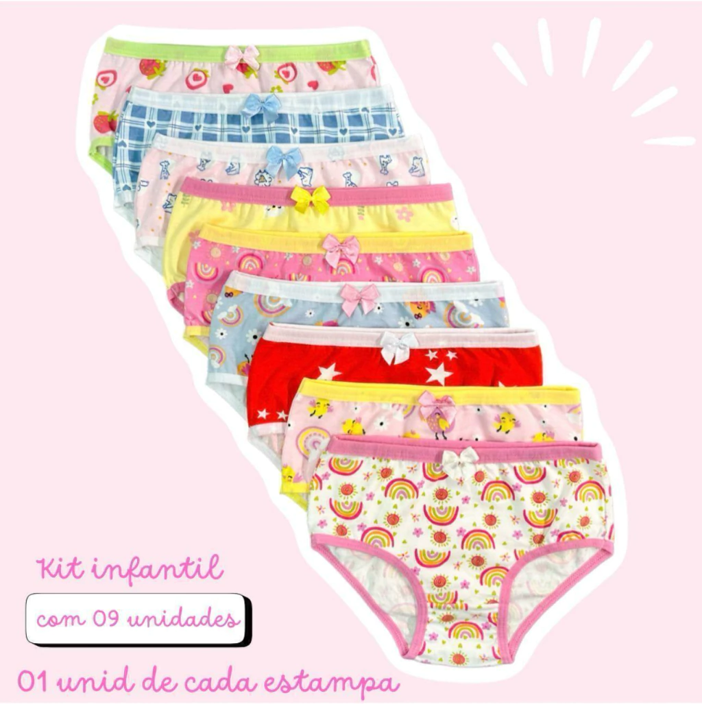 Detalhes: Apresentamos o Kit de Calcinhas Estampadas, uma coleção que une conforto e diversão! Composto por 9 peças confeccionadas em tecido cotton penteado, 96% algodão e 4% elastano, essas calcinhas são ideais para proporcionar liberdade de movimento e um toque suave na pele.