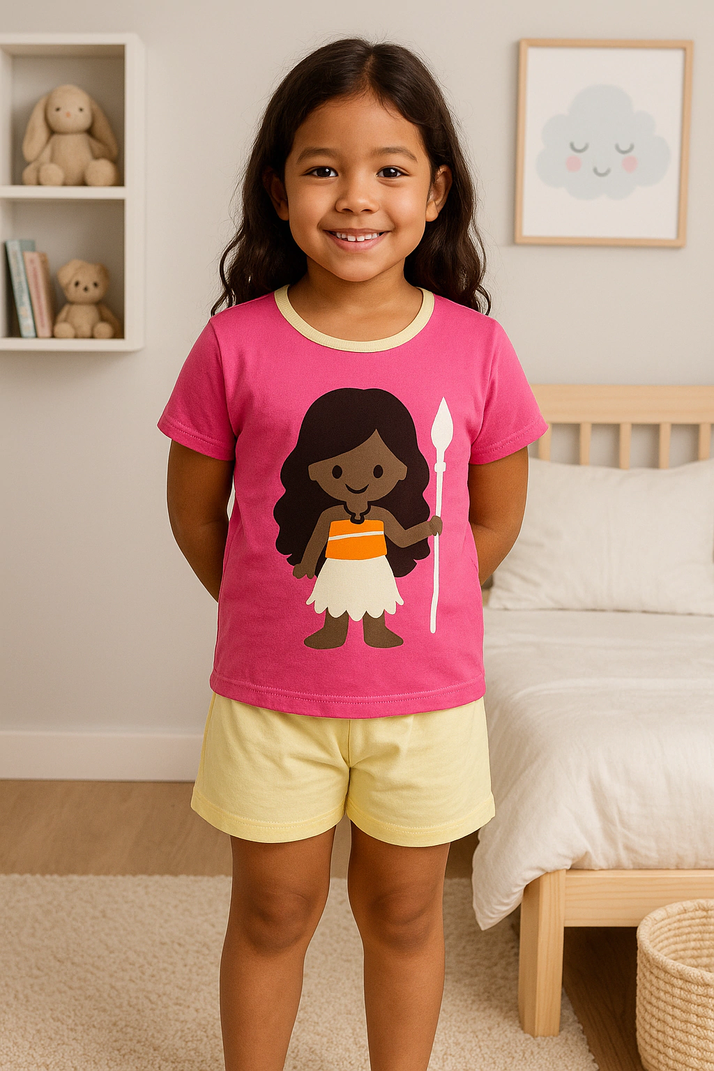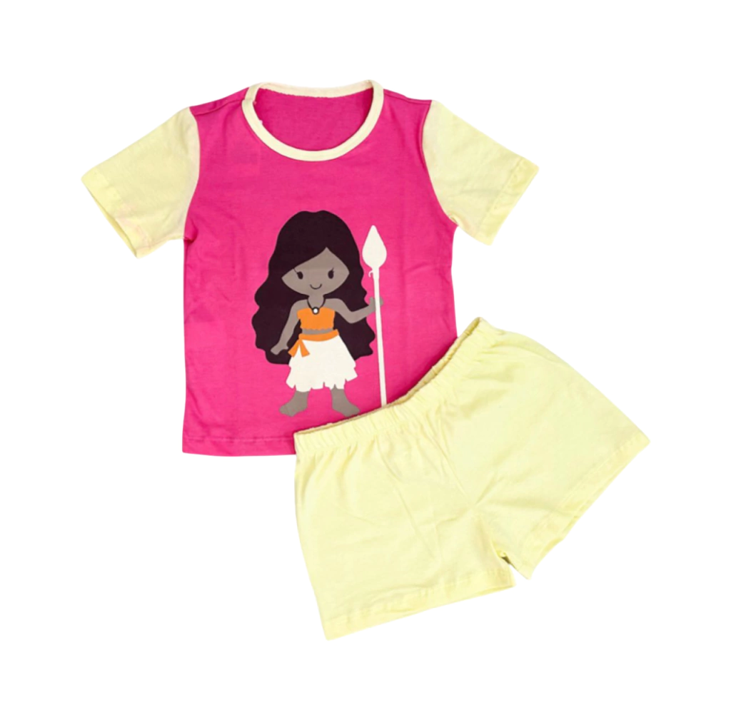 Apresentamos o Pijama Princesa Moana ! Este conjunto é perfeito para as noites de sono das suas pequenas. Confeccionado em 100% algodão, ele garante conforto e frescor durante toda a noite.